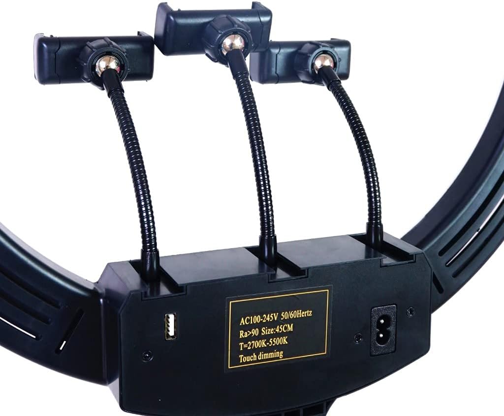 Le Ring Light MJ18 RGB LED de 45 cm est conçu pour offrir un éclairage uniforme et polyvalent, idéal pour les influenceurs, maquilleurs, photographes et créateurs de contenu. Il élimine les ombres indésirables et met en valeur chaque détail de vos vidéos et photos.